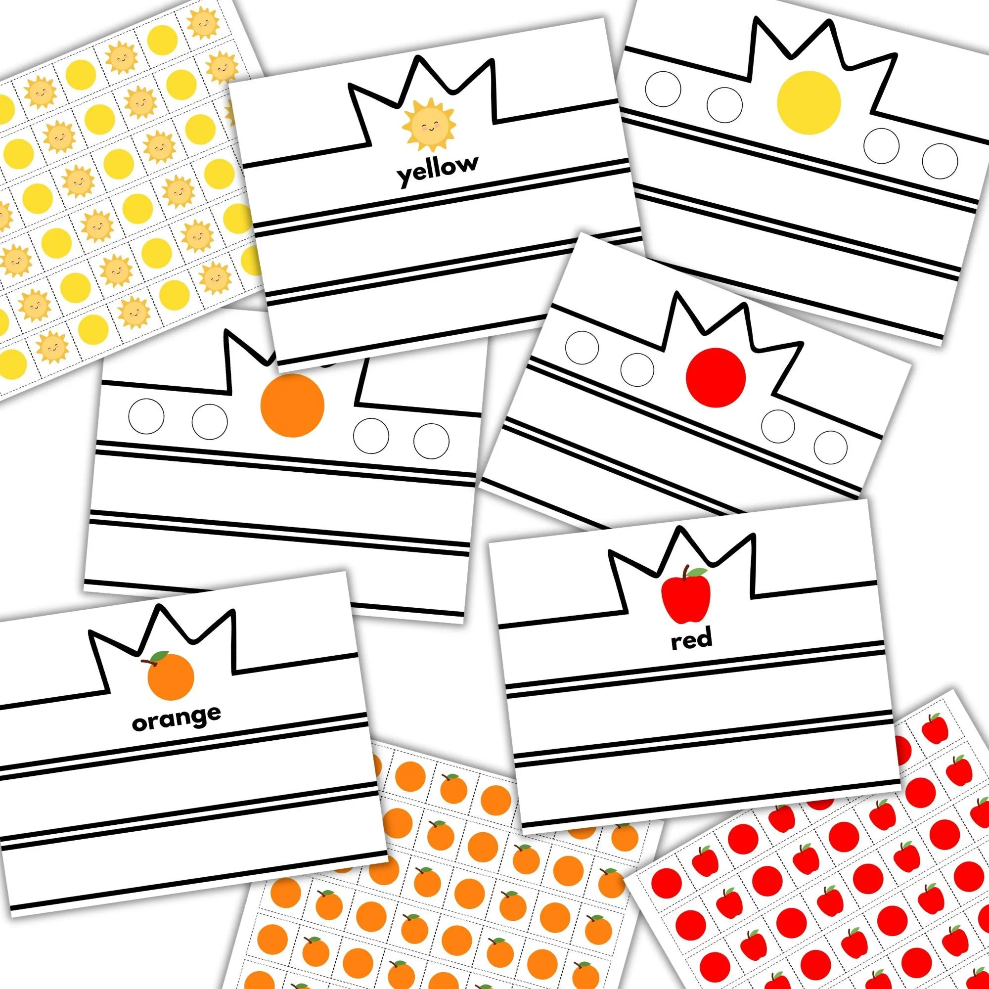 Make color recognition both fun and wearable with our Learning Crowns – Colors! This 36-page resource covers 11 essential colors, giving children a creative, hands-on way to explore each hue. Each color’s crown page is designed for coloring, cutting, and customizing—then assembling with included band strips to fit around a child’s head. We’ve also provided pre-colored small squares that can be cut out and pasted onto the band for extra flair.